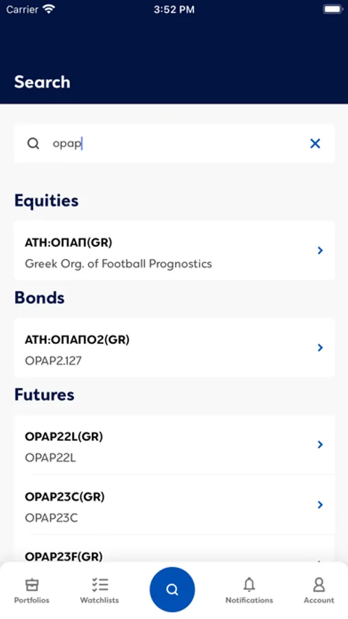 · Stocks, ΕTFs, Bonds, Stock Futures and Index futures, listed in Athens Exchange
