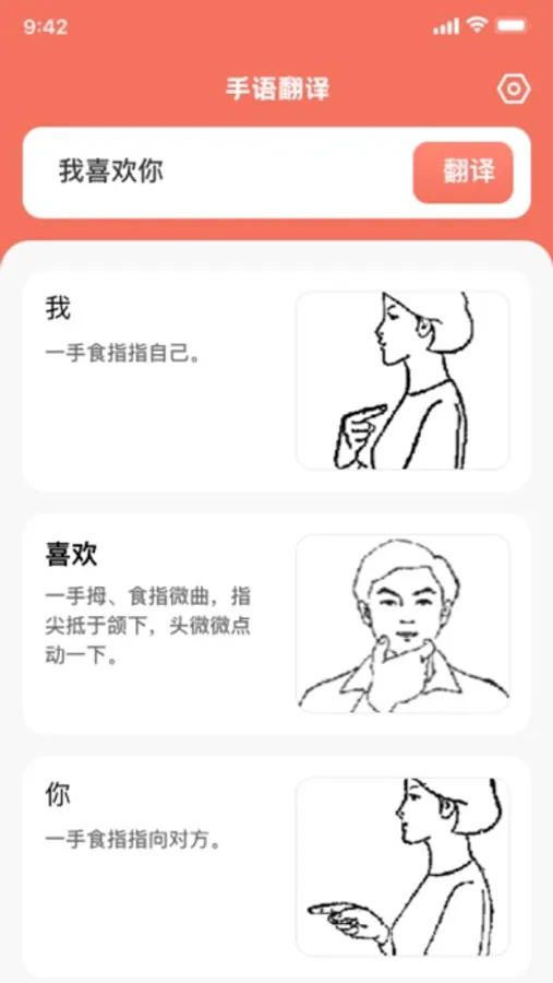 -智能查询手语表达,配有详细介绍与精美插画的手语手势介绍,帮您快速学习运用,是个可以随身带的手语翻译
