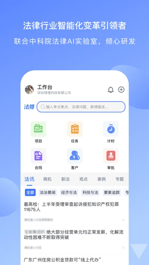 得理律助,律师专属的智能助手。中科院先进院法律AI实验室智能算法专家和资深律师联合研发,打造全球领先的智能律师助理。
