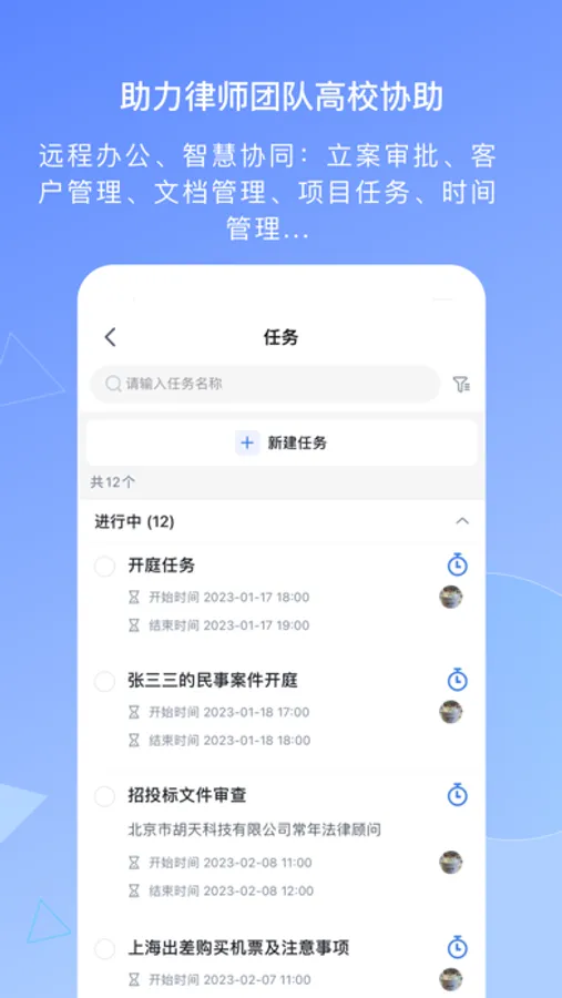● 项目管理:多种项目协同工具,文档协同、知识共享、任务分派等让律师团队高效协作
