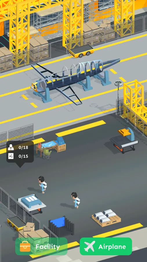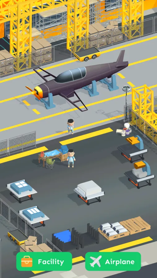 Starting from the first part, making each part of the transportation, eventually build your plane. You can hire workers to help you carry, upgrade the equipment to strengthen work efficiency, and finally get a plane.