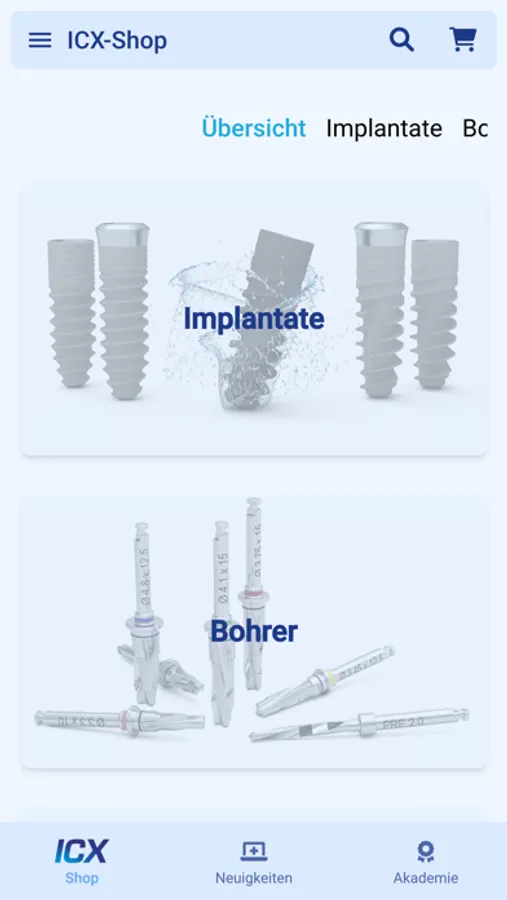 Unsere App bietet Ihnen eine bequeme Möglichkeit, Produkte von überall und zu jeder Zeit zu bestellen. Sie können sich in der App anmelden, um auf unser gesamtes Sortiment zuzugreifen, von hochwertigen Implantaten und Bohrern bis hin zu digitalen Lösungen und mehr.