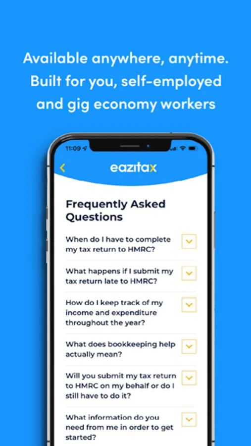 Eazitax - We’re the accountancy and tax specialists for self-employed and gig economy workers.Our intuitive app allows you to signup with our tax service, view your account information and contact our tax team. Our smart software will have your tax and accounts done in no time. Get any tax or accountancy question answered in minutes with our UK based team of accountants and tax experts. You can spend less time on tax and accounting and more time on the things that matter. It’s that Eazi. Less time on paperwork and an Eazi life.