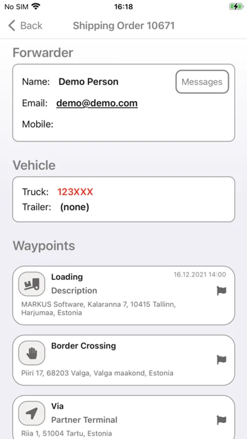 The application enables real time communication between freight-forwarders and drivers. Drivers can register shipment collection and delivery, obtain digital signature, take photos of goods and paper proof-of-delivery documents.