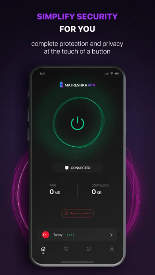 Matreshka's interface leaves no questions. Easy to use and intuitive to use VPN service with perfect protection. No complicated settings and switching: download - turn on - success.