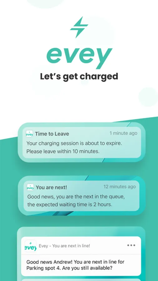 The notifications inform you of the actions regarding your charging moment, for example when you are next in the queue or when your charging session is coming to an end.