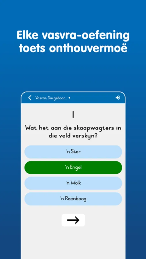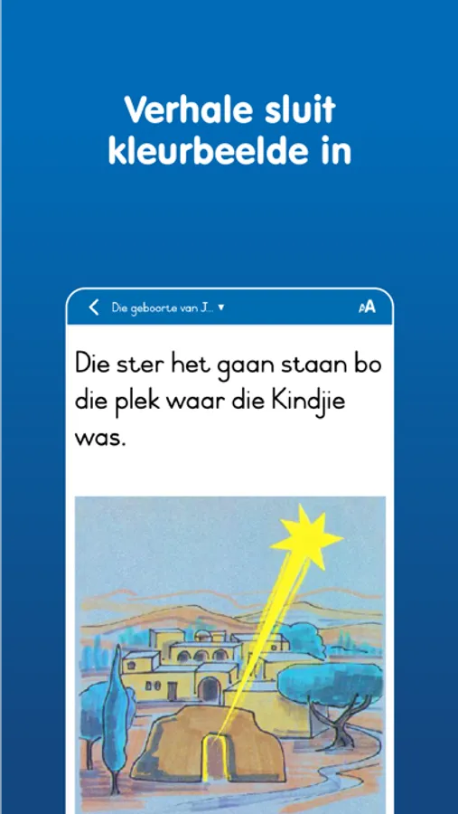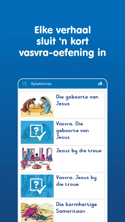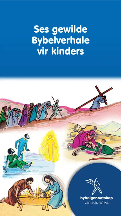 Six popular Bible stories in Afrikaans with colour images and quizzes.