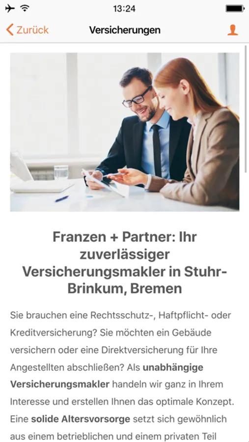 Willkommen bei Franzen + Partner, Ihrem kompetenten Immobilien-, Finanzierungs- und Versicherungsmakler in Stuhr-Brinkum, Bremen und Umgebung! Sie benötigen eine Immobilienfinanzierung, sind auf der Suche nach einem Wohn- oder Gewerbeobjekt oder möchten selbst eine Immobilie verkaufen? Sie wollen eine Privat- und Firmenversicherung abschließen, einen Kredit aufnehmen oder sich um Ihre private oder betriebliche Altersvorsorge kümmern? In all diesen Belangen sind wir gerne die starken Partner an Ihrer Seite!