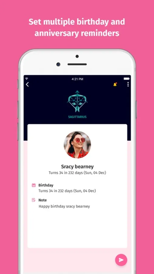 You'll never forget an important day anymore. Organizes all of your birthdays and aniversaries. See all at a glace and get reminded when you want!