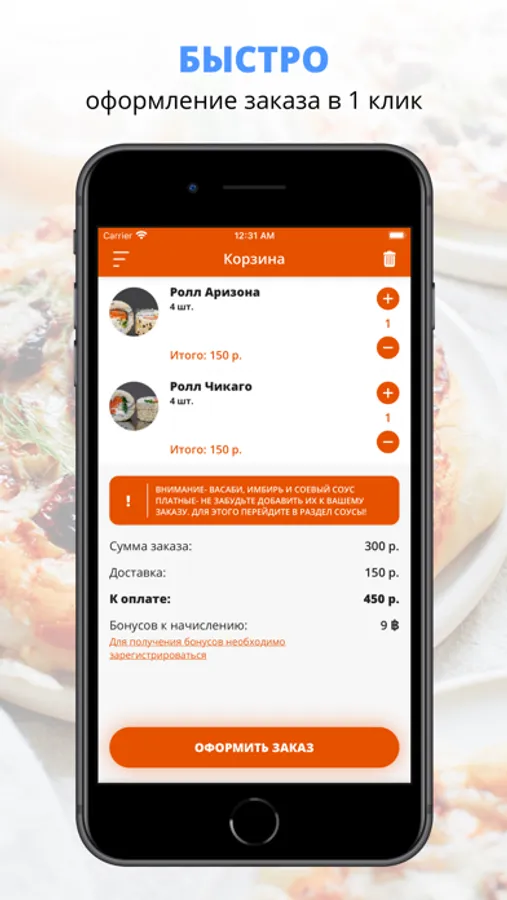 Скачивайте наше приложение, оформляйте заказ и наслаждайтесь любимой едой, где бы Вы ни были! Приятного аппетита!