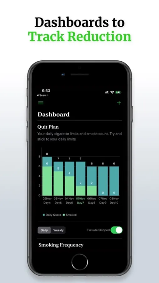 ◈ Interactive charts demonstrating your quit journey (Gradual Quit Mode) and your adherence to the quit plan.