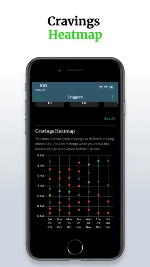 ◈ A cravings heatmap provides a bird's eye view of the pattern and intensity of your cravings.