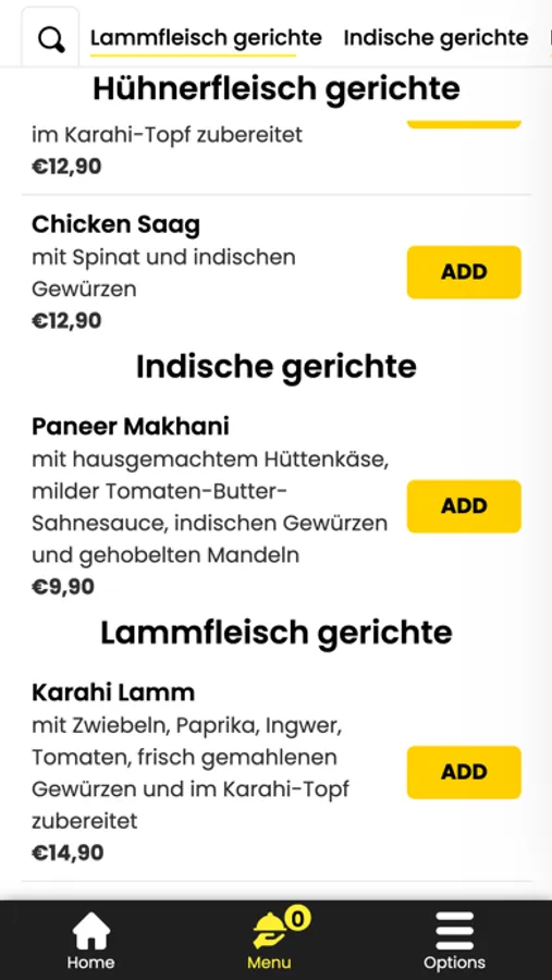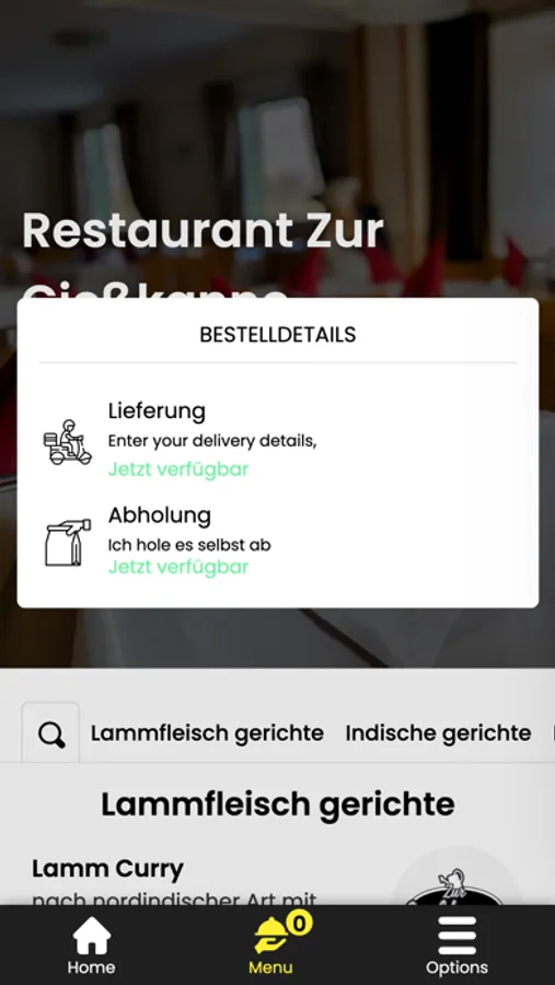 - Durchsuchen Sie die Speisekarte des Restaurants und sehen Sie sich alle anpassbaren Optionen im Voraus an