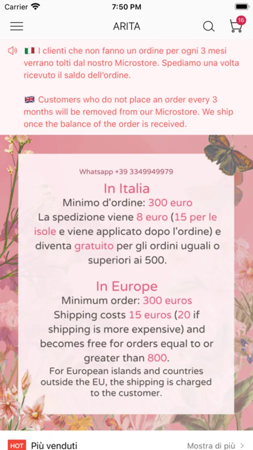 Arita è un app professionale per il mondo della moda, permette la visualizzazione del catalogo con pochi semplici passaggi. I nuovi utenti possono fare la richiesta di registrazione gratuita direttamente dall'applicazione, una volta che la richiesta viene accettata, il cliente potra' visualizzare tramite l'app tutte le informazioni sui prodotti ed effettuare gli ordini.