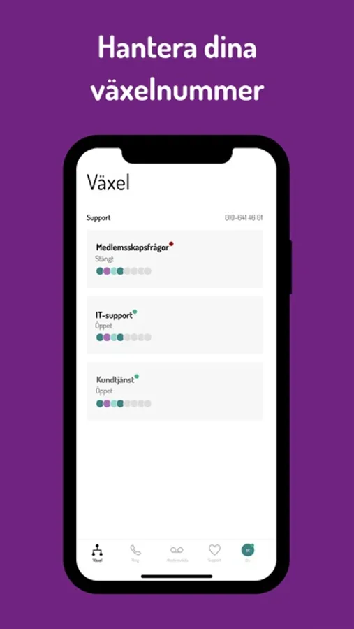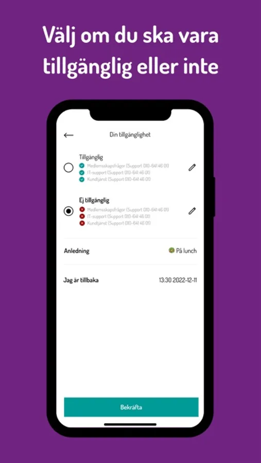 * Sätt dig som tillgänglig eller inte tillgänglig för dina växelnummer