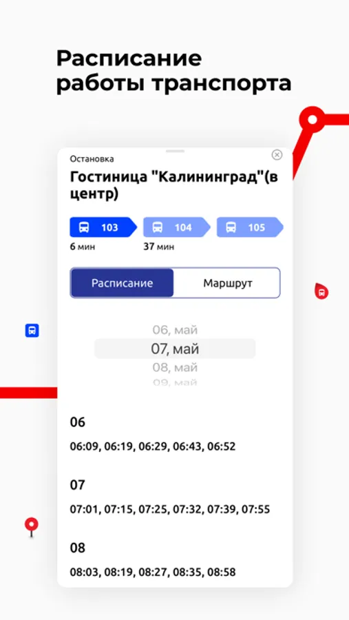 Мы работаем над тем, чтобы мобильное приложение стало еще более удобным для пассажиров Калининградской области, поэтому будем рады Вашим предложениям, которые вы можете оставить в разделе «Поддержка».