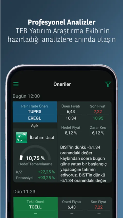 TEB YATIRIM TRADER uygulaması ile portföyünüze erişebilir, Borsa İstanbul’da Hisse, VİOP ve Varant alım-satım işlemleri yapabilirsiniz.