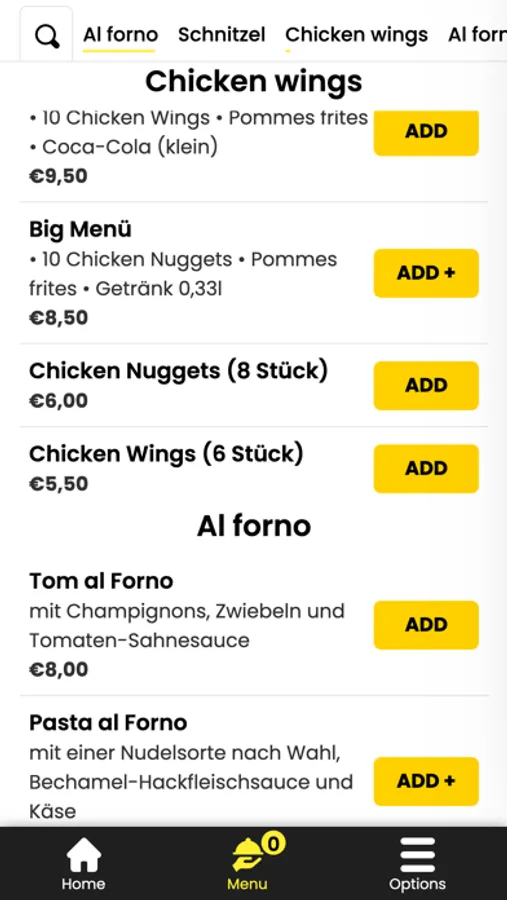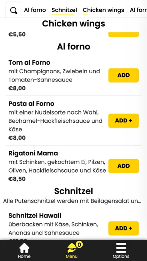 - Durchsuchen Sie die Speisekarte des Restaurants und sehen Sie sich alle anpassbaren Optionen im Voraus an