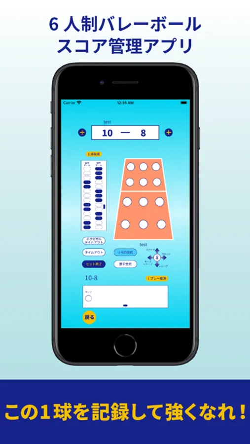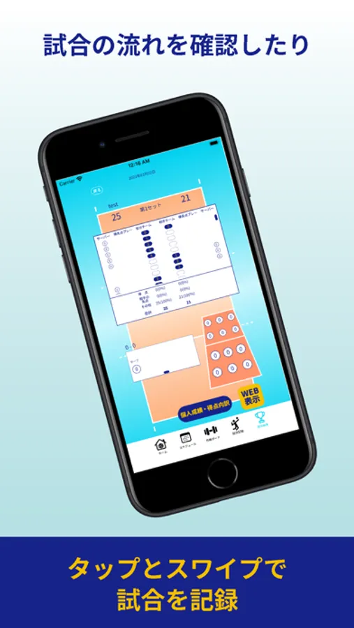 コート上の背番号をタップしたりフリックしたりすることで詳細記録を残すことができます。