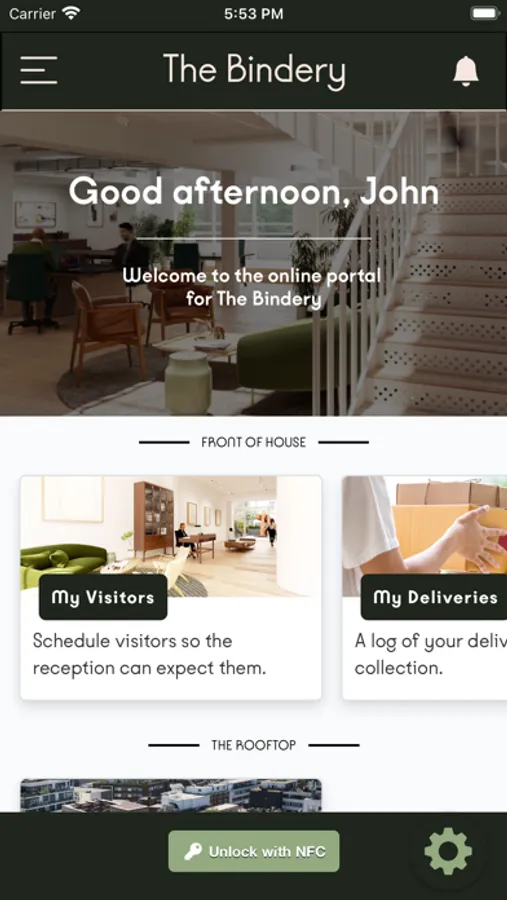 The Bindery app gives occupiers access to a range of concierge services including delivery notifications and messaging. The app also keeps occupiers up to date with the latest building announcements and social events.