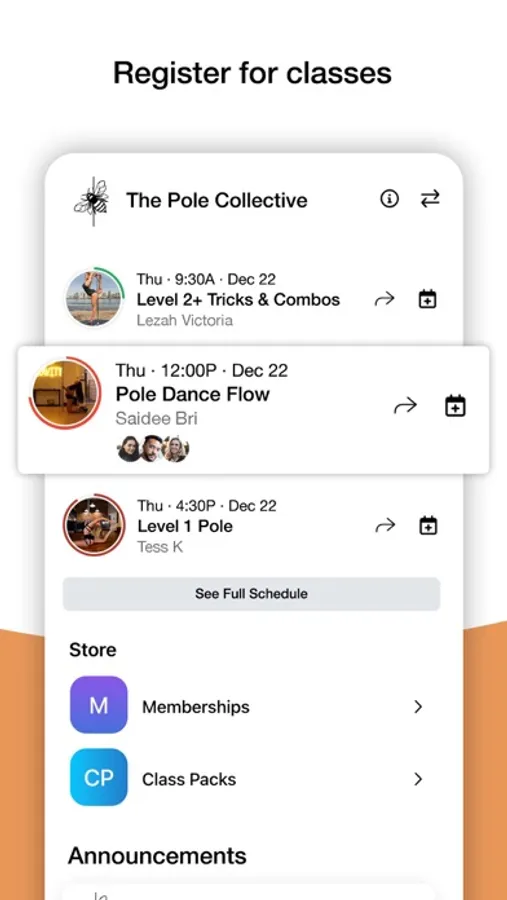 Download The Pole Collective App today to plan and schedule your classes. From this Mobile App you can view our class schedule, sign-up for classes, as well as view the studio's location and contact information. Optimize your time and maximize the convenience of signing up for classes from your device. Download our App today.