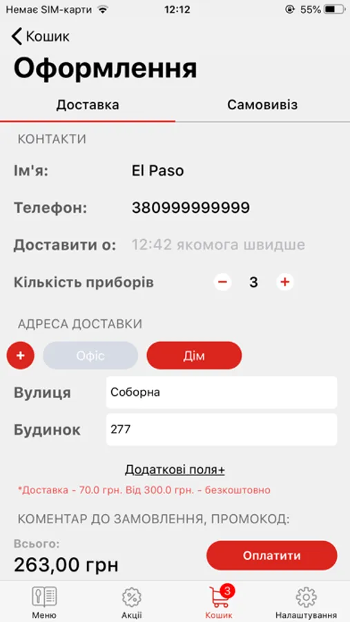 • встановити бажаний час доставки замовлення за вказаною адресою;
