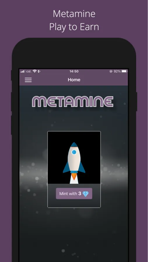Metamine is a play to earn game. You can mint a spaceship and then go to different planet for mining. Claim The $MINE and then redeem rewards ticket.