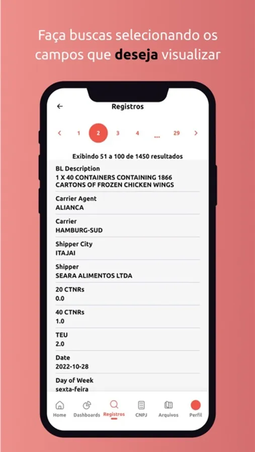 O DataLiner Mobile permite fazer buscas e visualize relatórios das movimentações de importação e exportação.