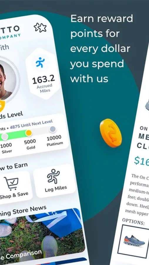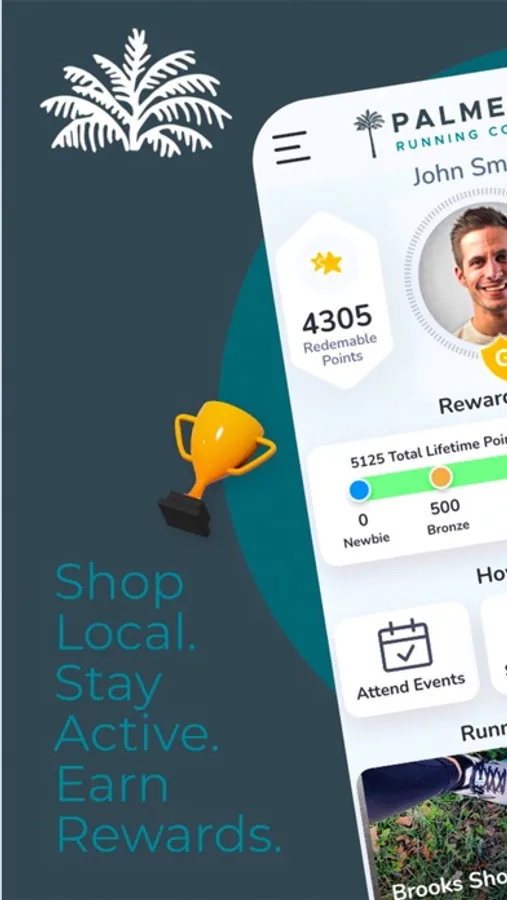 Shop Local. Stay Active. Earn Rewards. We want you to be part of the Palmetto Running Company Rewards Program. It's simple and free, just download the app and login. Shop in the app or in our store and you'll earn reward points for every dollar you spend. You'll also get reward points for checking in at all of our events. Then redeem those points for digital gift cards that can be used in stores OR online/through our app. Plus, track your lifetime point total to level up with reward achievements, bragging rights, and other perks.