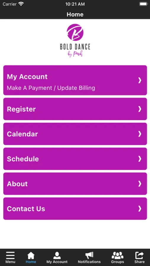 The Bold Dance app allows you to manage your account with ease, register for classes, see our calendar of events, and view all of your important dance documents in one easy to find place. You'll also receive important notifications about class changes, closings, registration openings, special announcements, and upcoming events.