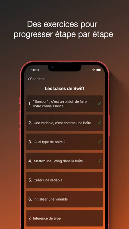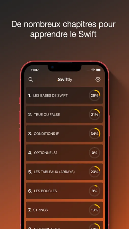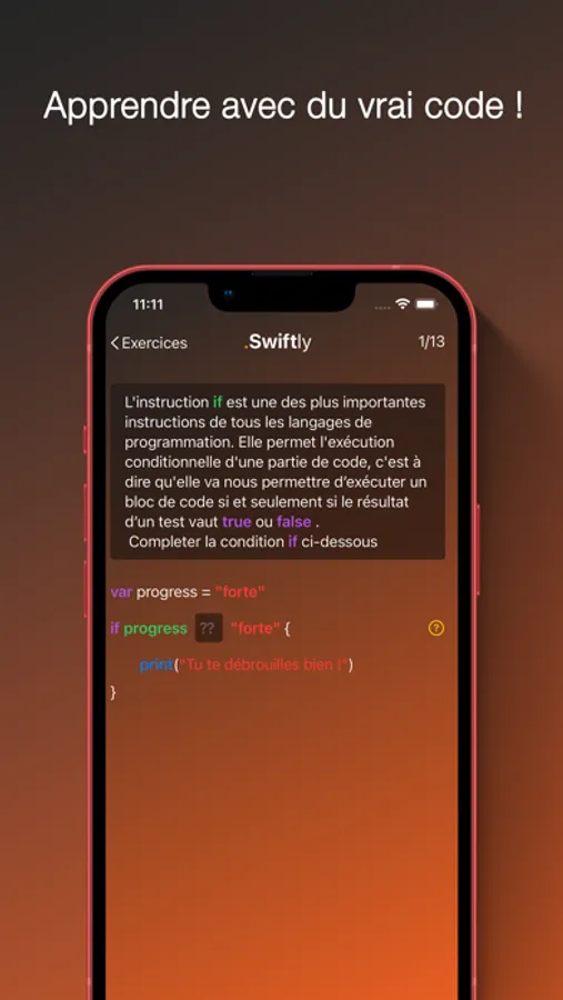Apprenez facilement à coder en Swift depuis votre iPhone, iPad ou Mac avec Swiftly. L'application, qui est en français, comprend plus de 400 mini-cours et exercices interactifs.
