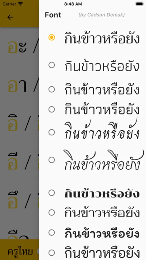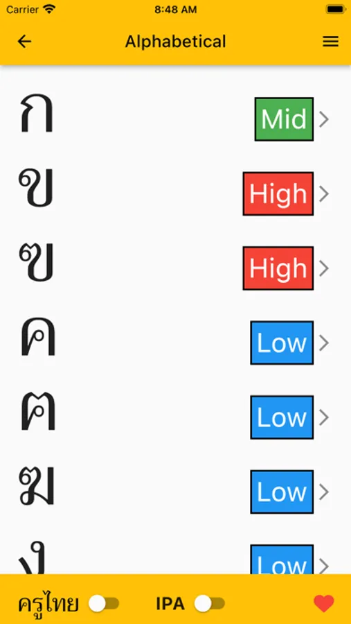 "I can read Thai" provides reference material and flashcards that you can use for a few minutes every day to learn the Thai alphabet and vowels and master the tones. Everything you need to be able to correctly pronounce any Thai words you see can be learned by using this app. Simply use the app for a few minutes a day to practice and test yourself, and you'll be reading Thai in no time. You can even pick from a large selection of common fonts to help with recognition of real Thai writing in the real world.
