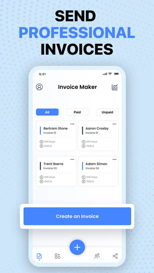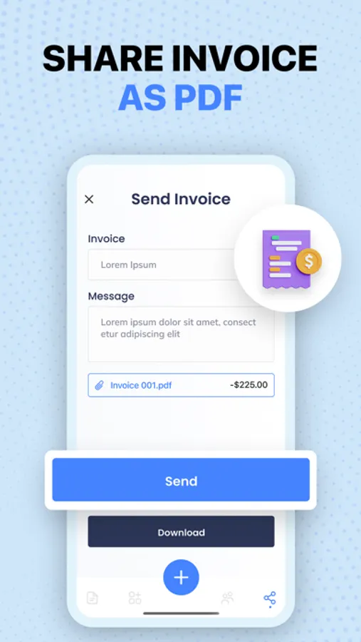 Tap the + button for preparing a new invoice. And then the app opens a page where you should fill the information. After you fill the blanks your invoice is ready to send quickly. Also thus, you save your time.