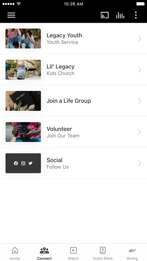 This app will help you stay connected with the day-to-day life of our church. With this app you can: watch or listen to past messages; stay up to date with push notifications; share your favorite messages via Twitter, Facebook, or email; and download messages for offline listening.