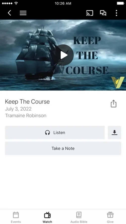 This app will help you stay connected with the day-to-day life of our church. With this app you can: watch or listen to past messages; stay up to date with push notifications; share your favorite messages via Twitter, Facebook, or email; and download messages for offline listening.