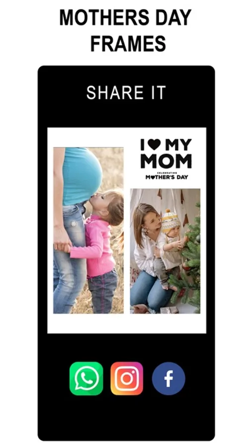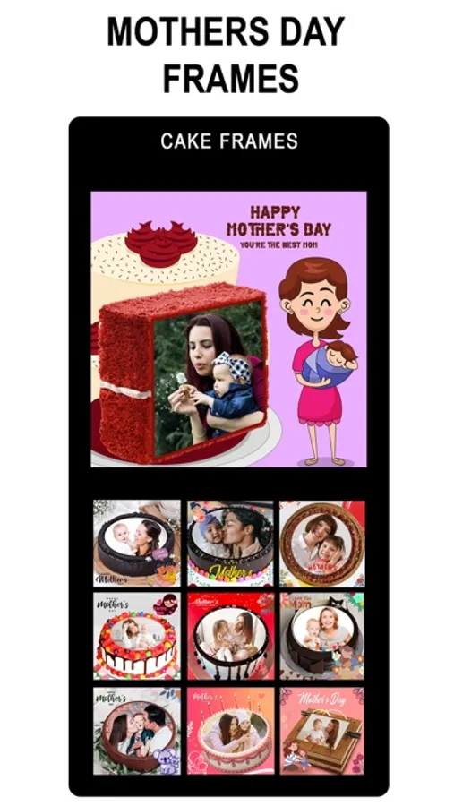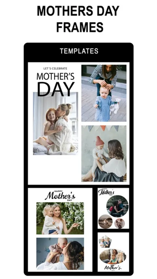 Mothers' Day Photo Frames is a collection of many lovely photo frames for you to decorating your lovely photos. It has the same function as the Love Photo Frames, Birthday Photo Frames and other apps.