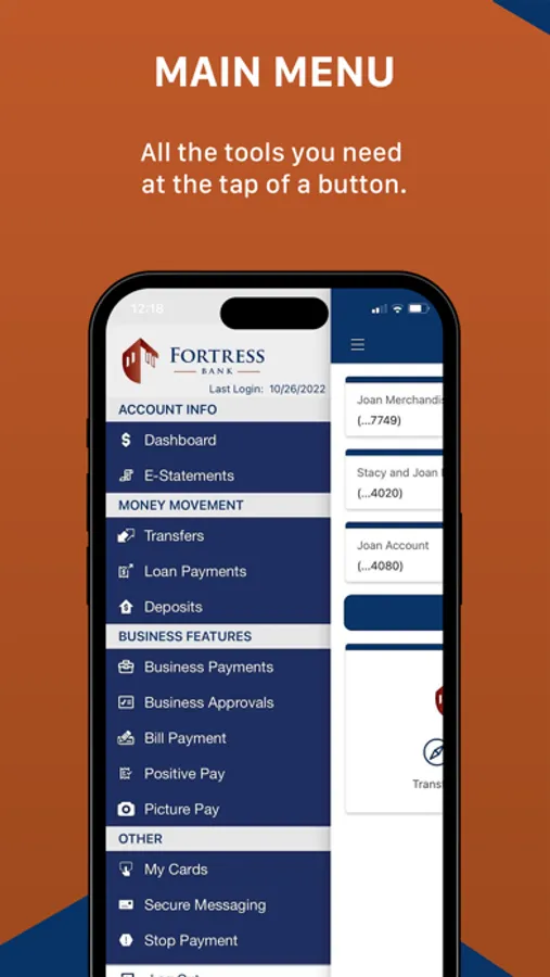 With the Fortress Bank Mobile Business Banking App, you can safely and securely access your accounts anytime, anywhere. Our mobile app is FREE and allows you to: