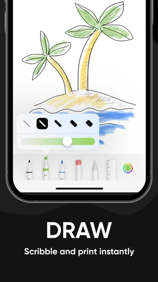 Take photos, scan documents, simply make notes/text or draw for quick output. Get your print out in less than 1 minute.