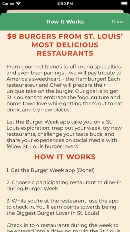 Let the Burger Week app take you on a St. Louis exploration; map out your week, try new restaurants, challenge your taste buds, and share your experiences on social media with fellow St. Louis burger lovers.
