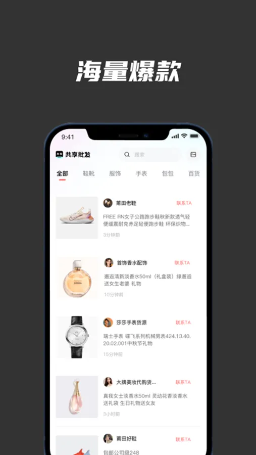 共享批发APP是一款界面简洁清爽的货源软件,可以联系商家了解更多货源信息