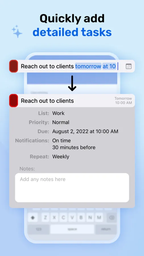 • Easily create detailed tasks