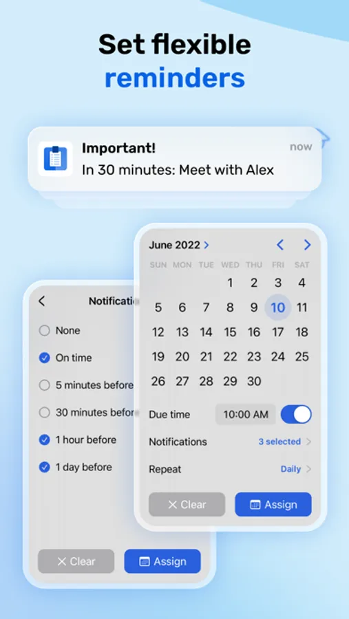 • Set multiple reminders for each task