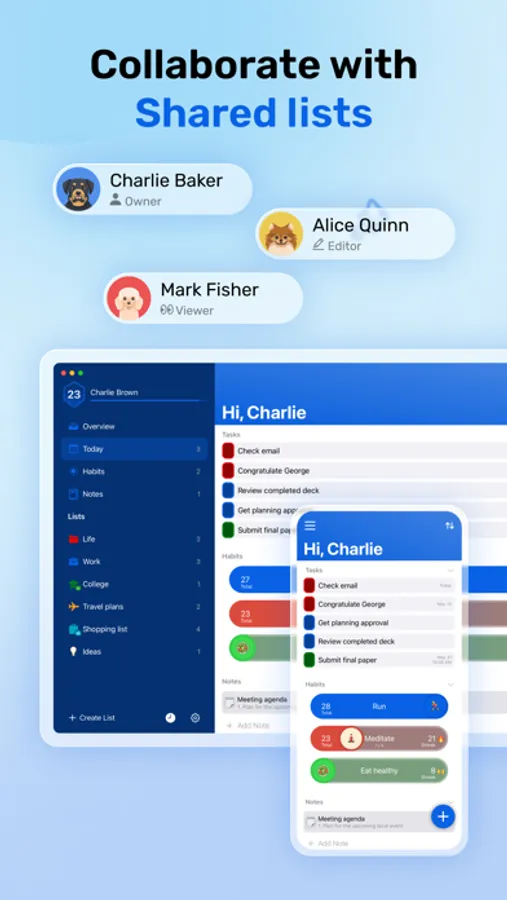 • To-do lists, habits, plans, agendas, and notes all in one place