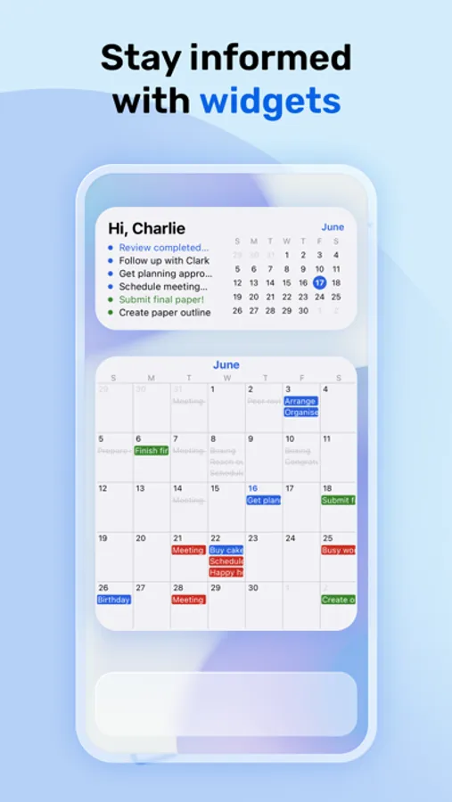 • Widgets for tasks and habits on home and lock screens