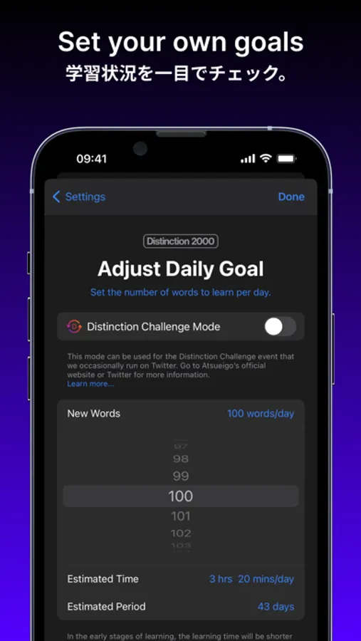・Create your own study plan based on your time availability and a daily vocabulary target.