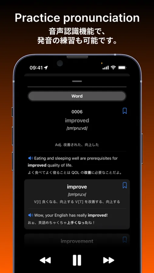 ・Practice your pronunciation with speech recognition (available only for main vocabulary)