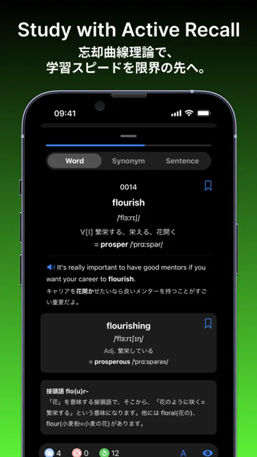 ・Achieve efficient memorization with spaced repetition based Study Mode, which reminds you of vocabulary when you’re about to forget it (Active Recall).
