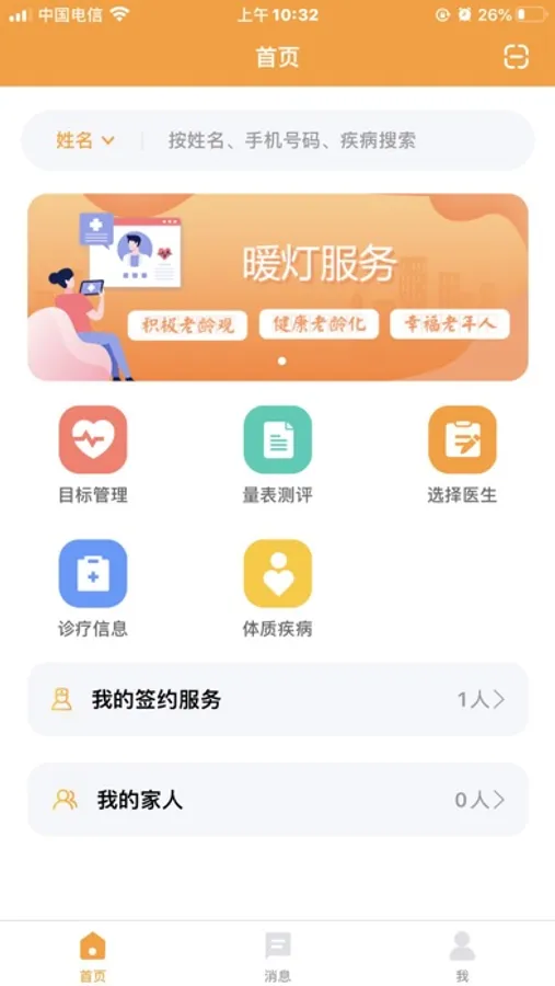 暖灯APP为用户端,针对中老年群体,提供智能的健康服务,包括电子健康档案管理与监测、健康宣教、健康咨询等,为中老年群体提供精准及时的健康促进、疾病防治等资讯