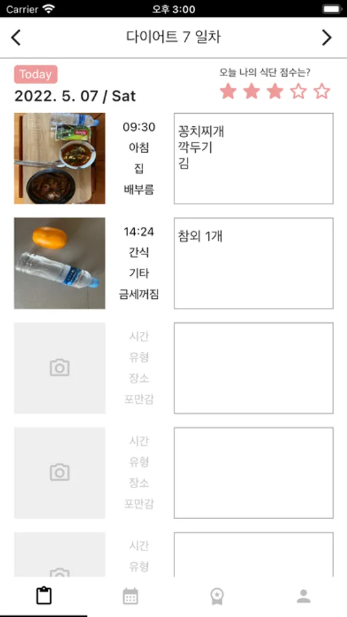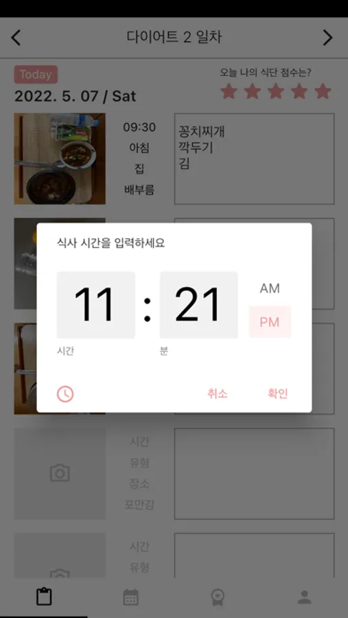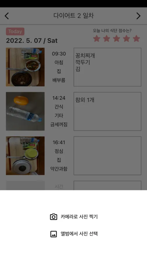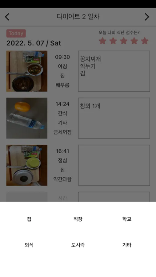 하루 동안 섭취한 식사 내용을 되도록 빠짐 없이 기록해주세요.