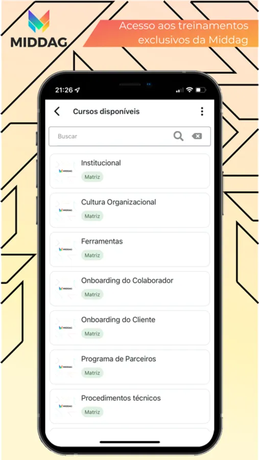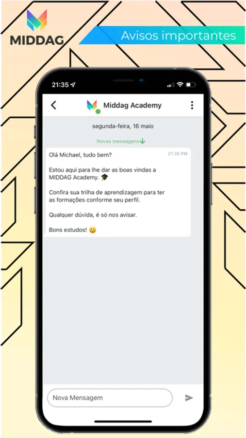 Esta é a versão mobile da MIDDAG Academy, este é projetado para simplificar o acesso às aulas do curso, trabalhos e atividades.